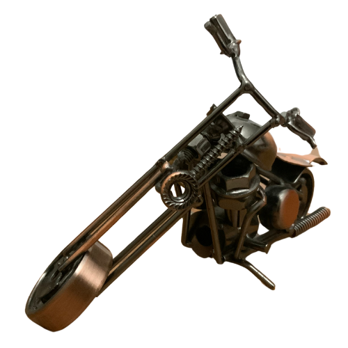 Bring a touch of industrial charm to your space with this Miniature Metal Bike, expertly handcrafted from real nuts, bolts, and scrap metal. This unique, small-scale sculpture blends creativity with craftsmanship, making it a perfect desk ornament, gift, or collectible for cycling enthusiasts and lovers of handmade art.