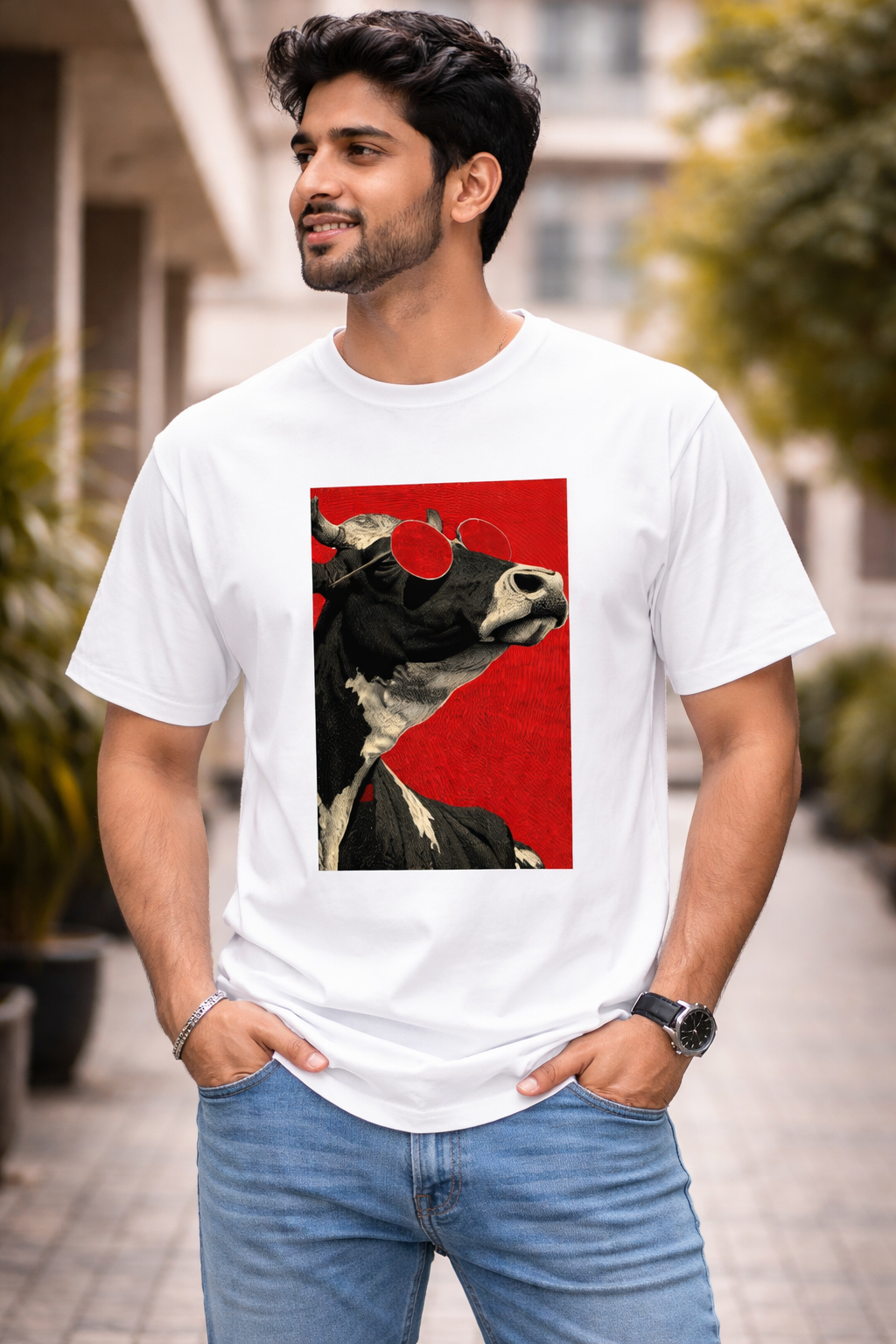 Cow with glass